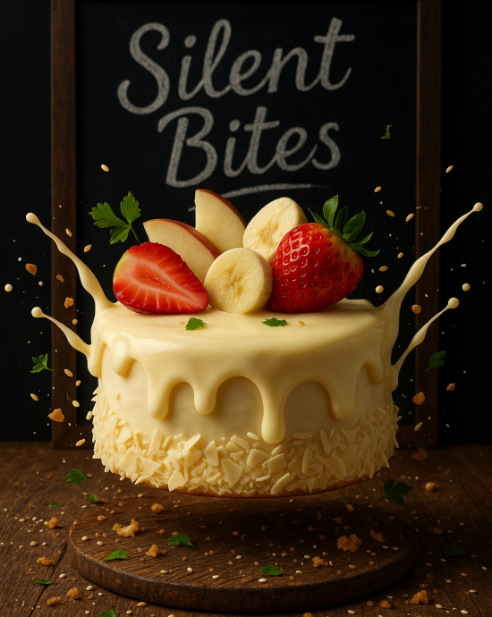 Her kata beyaz çikolatalı kremadan sürülür, üzerine dilimlenmiş taze meyveler yerleştirilir.🎂 Dış Kaplama: